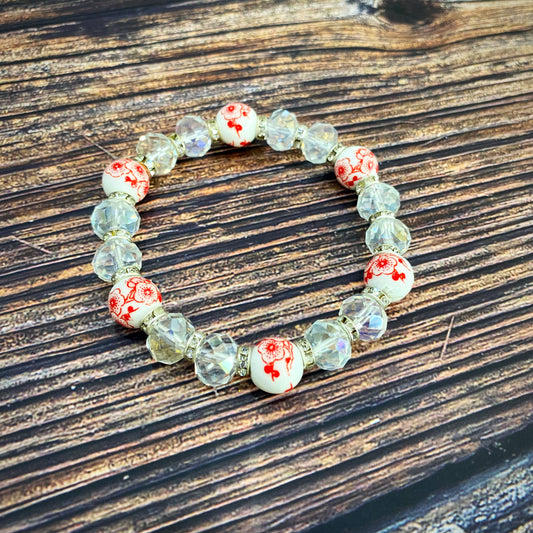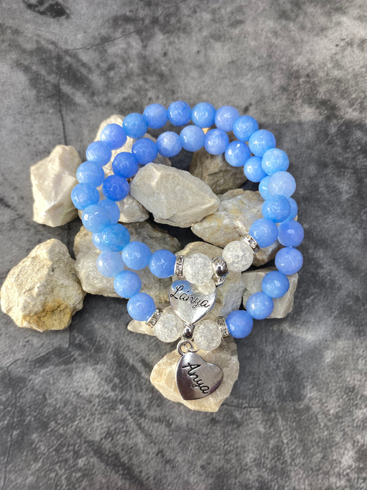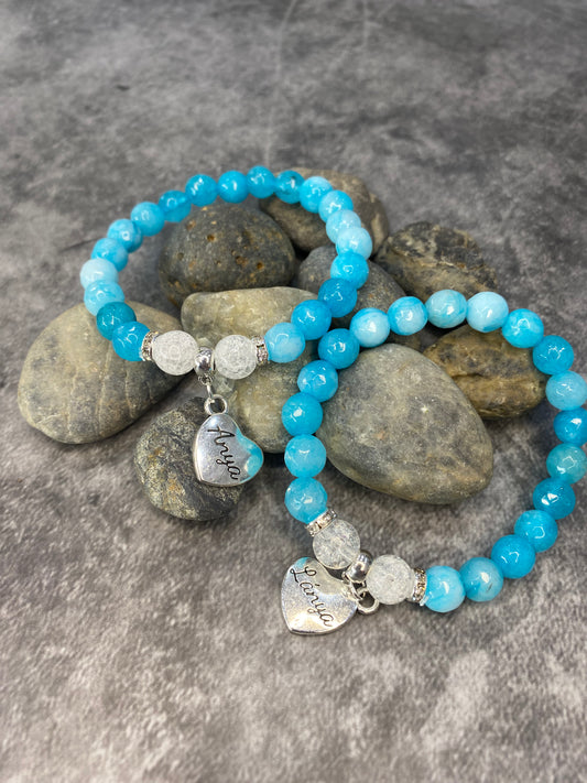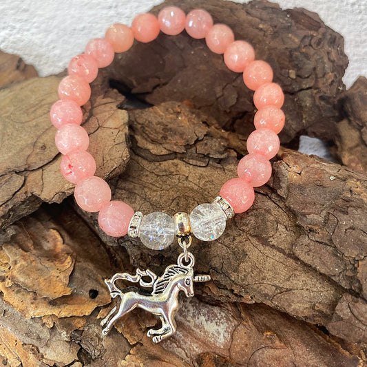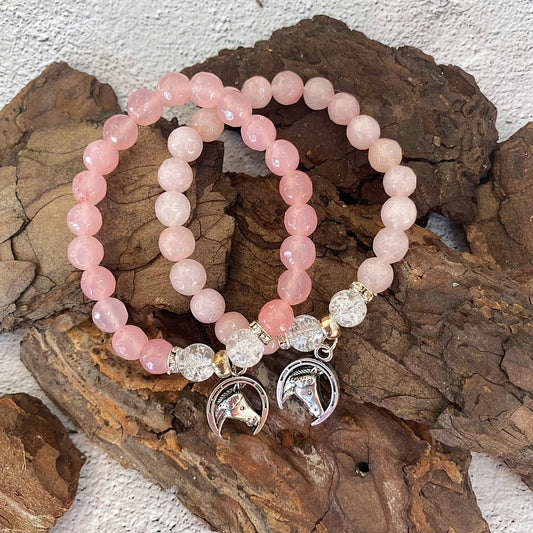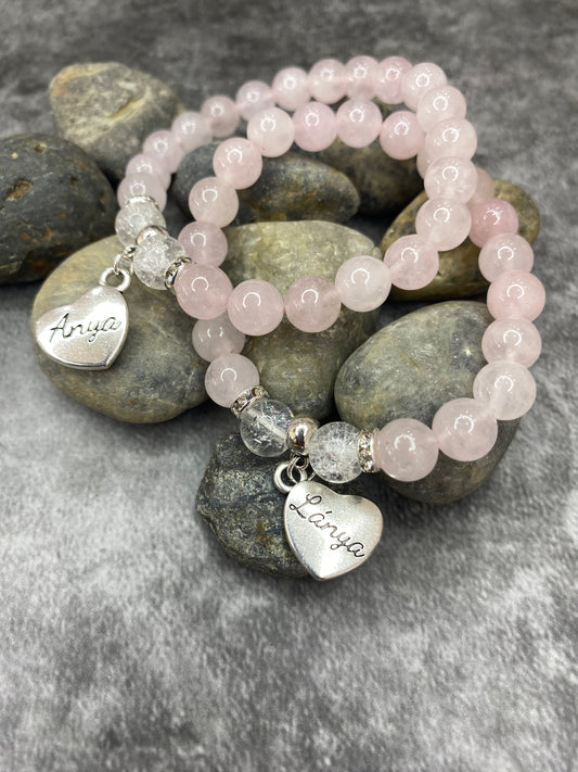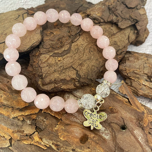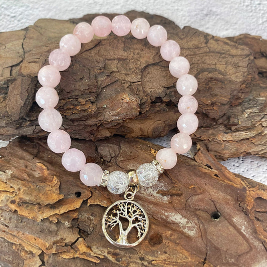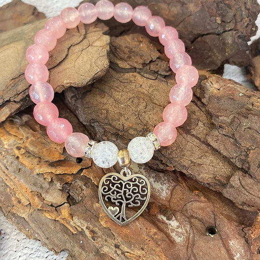 Rózsaszín kő karkötő szív alakú életfa medállal