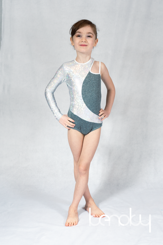Asszimetrikus szürke-fehér csillogós táncos dressz