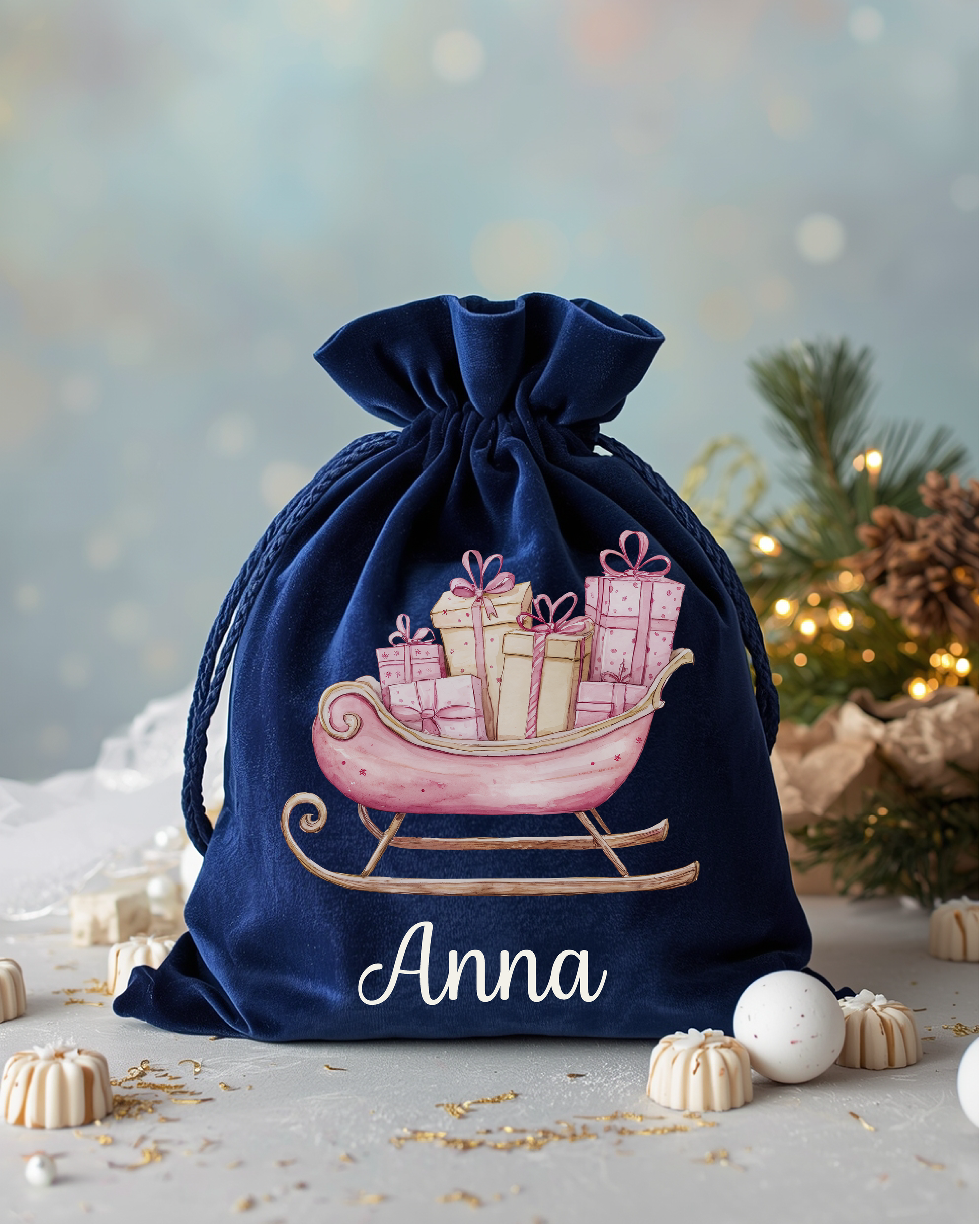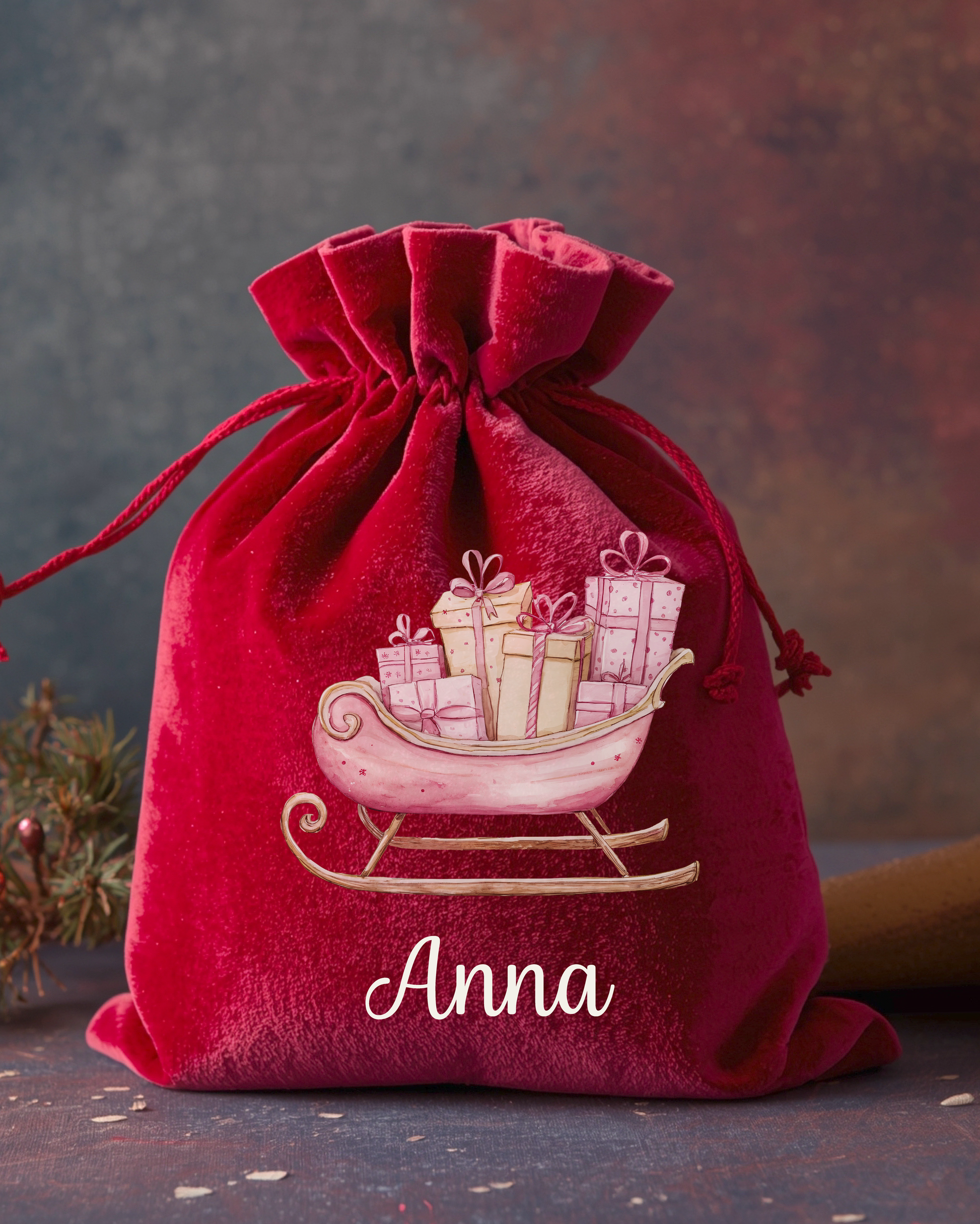 Nosztalgia mintával készített plüss mikulás zsák a Gyermek nevével. Anyaga puha plüss. A puha zsákba a Mikulás bele rejtheti a sok finomságot. A kedves minta és a Gyermek neve teszi igazán egyedivé.
