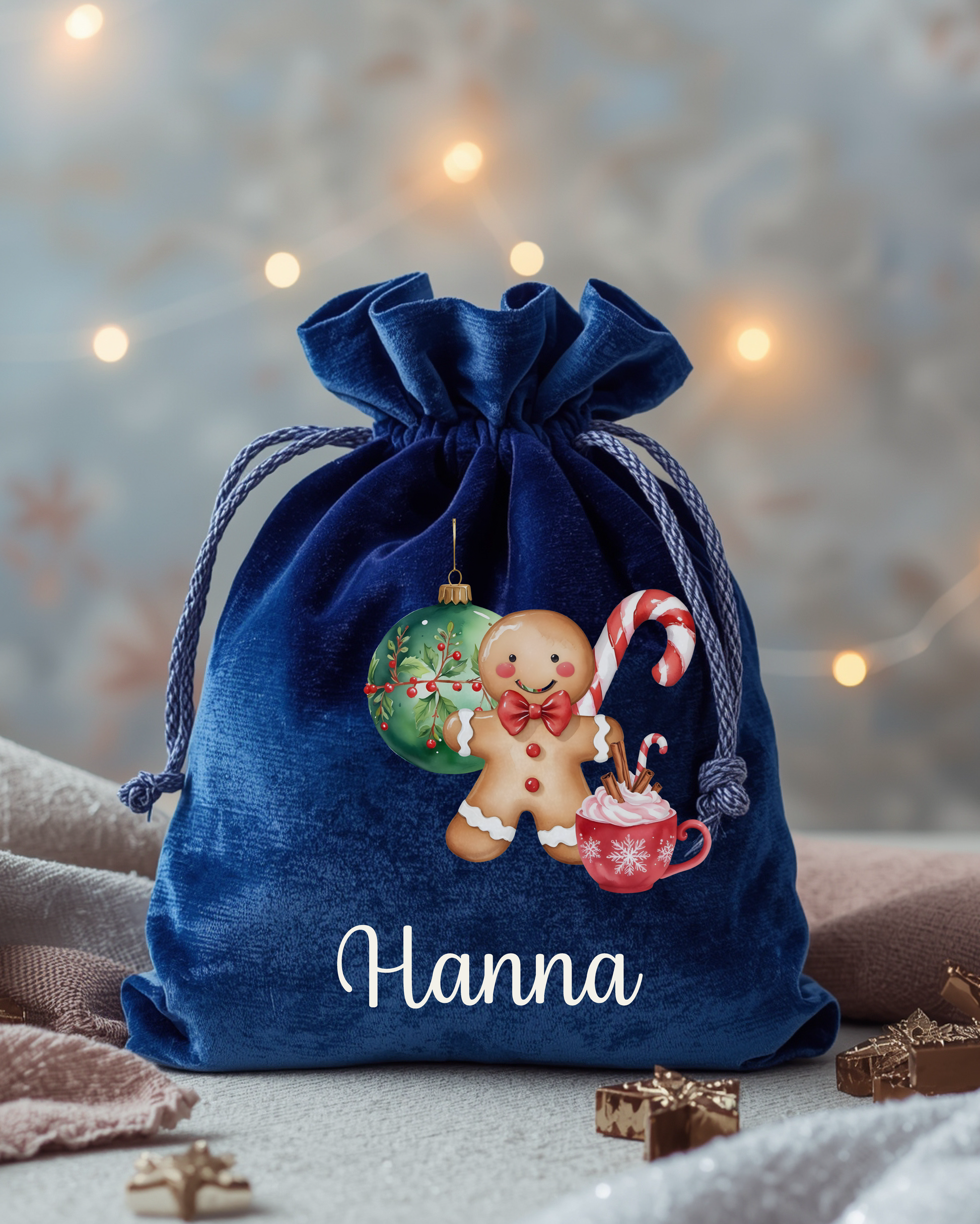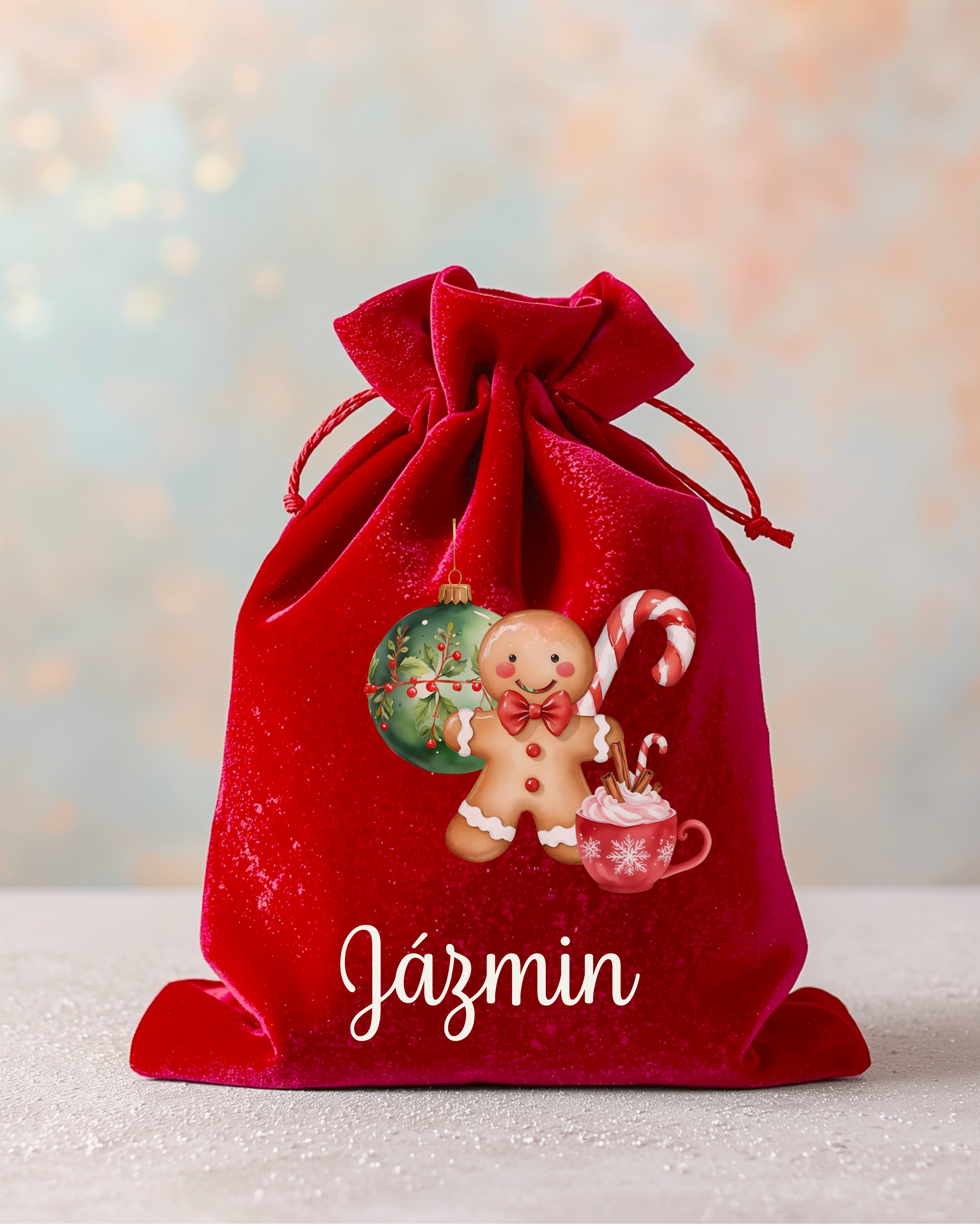 Nosztalgia mintával készített plüss mikulás zsák a Gyermek nevével. Anyaga puha plüss. A puha zsákba a Mikulás bele rejtheti a sok finomságot. A kedves minta és a Gyermek neve teszi igazán egyedivé.