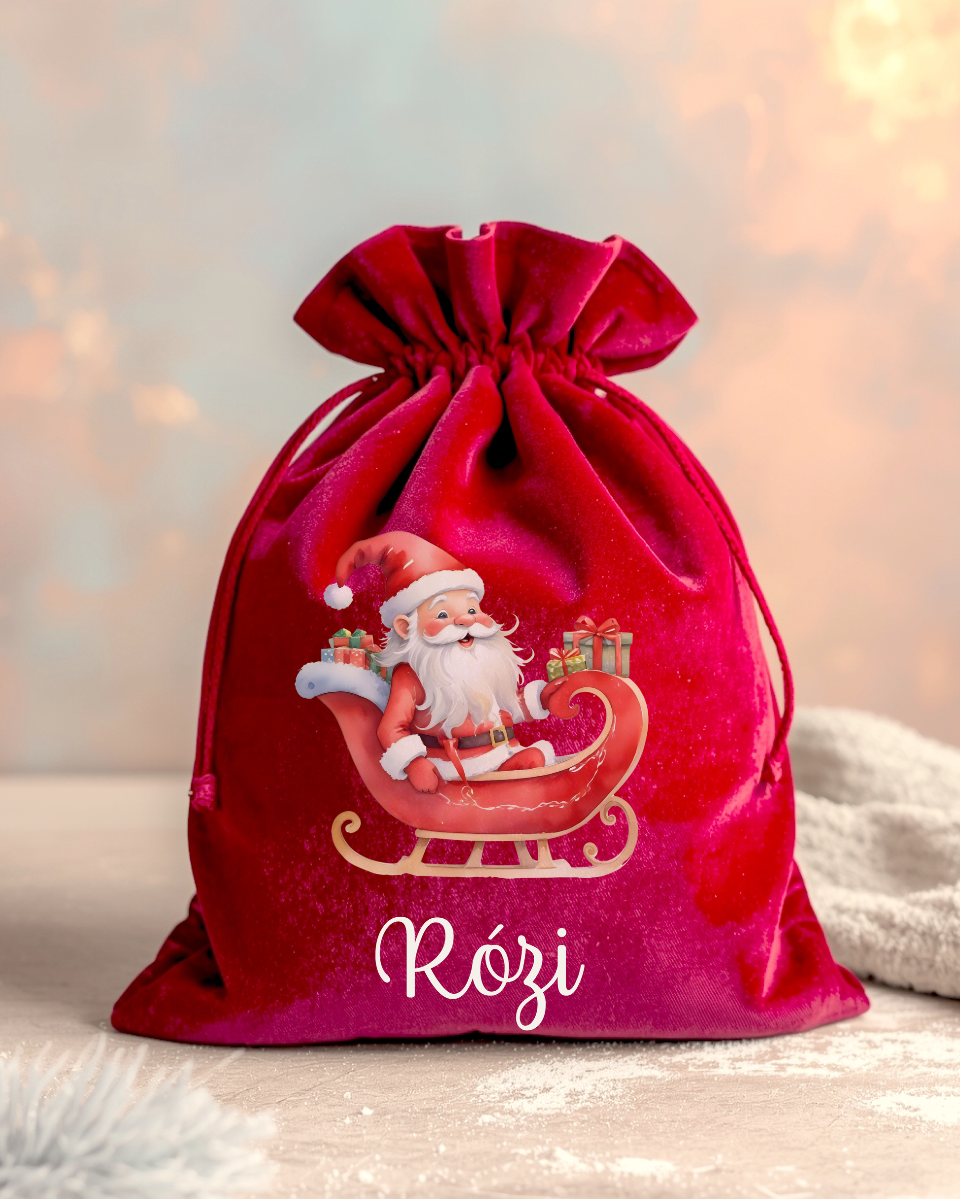 Nosztalgia mintával készített plüss mikulás zsák a Gyermek nevével. Anyaga puha plüss. A puha zsákba a Mikulás bele rejtheti a sok finomságot. A kedves minta és a Gyermek neve teszi igazán egyedivé.