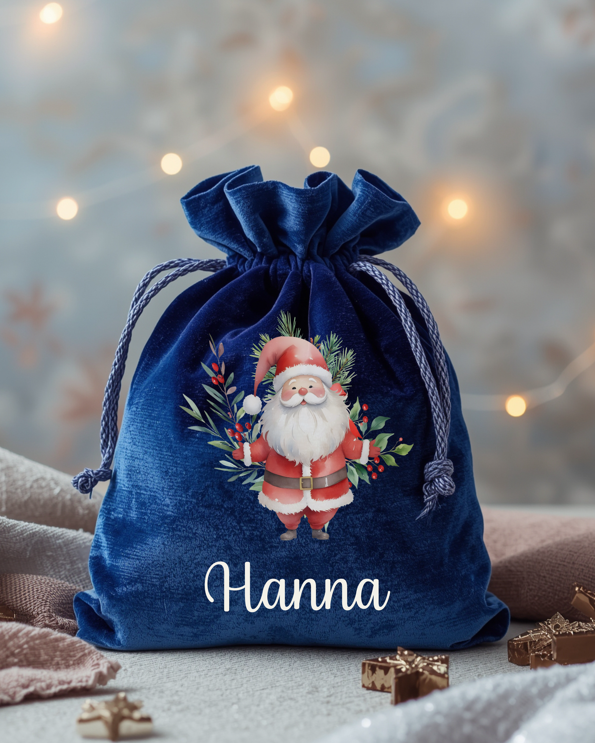 Nosztalgia mintával készített plüss mikulás zsák a Gyermek nevével. Anyaga puha plüss. A puha zsákba a Mikulás bele rejtheti a sok finomságot. A kedves minta és a Gyermek neve teszi igazán egyedivé.