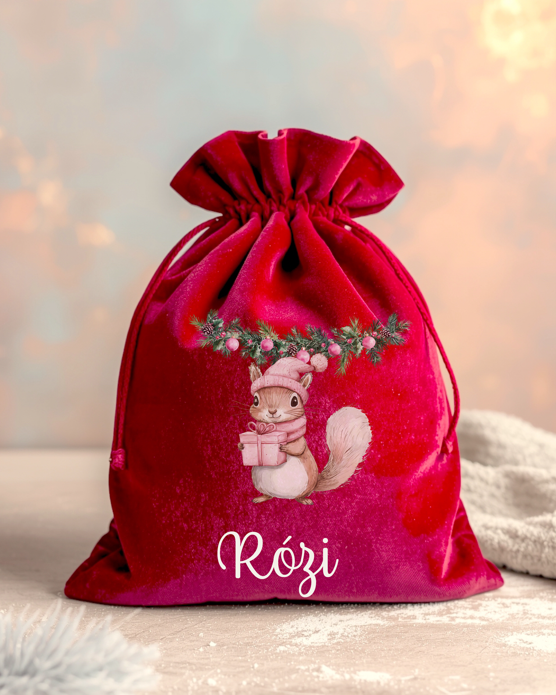 Nosztalgia mintával készített plüss mikulás zsák a Gyermek nevével. Anyaga puha plüss. A puha zsákba a Mikulás bele rejtheti a sok finomságot. A kedves minta és a Gyermek neve teszi igazán egyedivé.