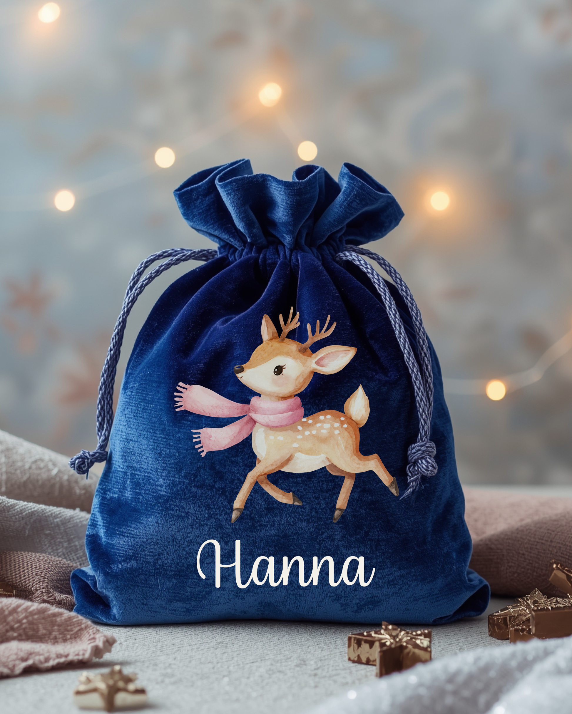 Nosztalgia mintával készített plüss mikulás zsák a Gyermek nevével. Anyaga puha plüss. A puha zsákba a Mikulás bele rejtheti a sok finomságot. A kedves minta és a Gyermek neve teszi igazán egyedivé.