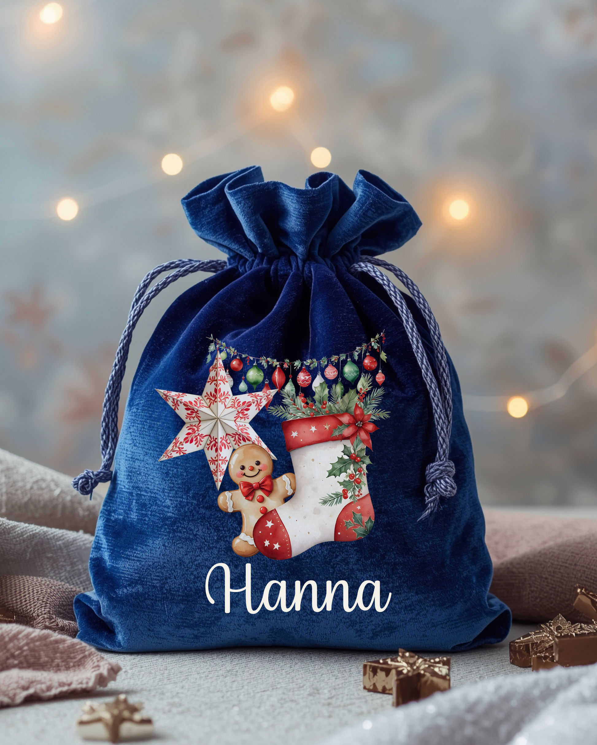 Nosztalgia mintával készített plüss mikulás zsák a Gyermek nevével. Anyaga puha plüss. A puha zsákba a Mikulás bele rejtheti a sok finomságot. A kedves minta és a Gyermek neve teszi igazán egyedivé.