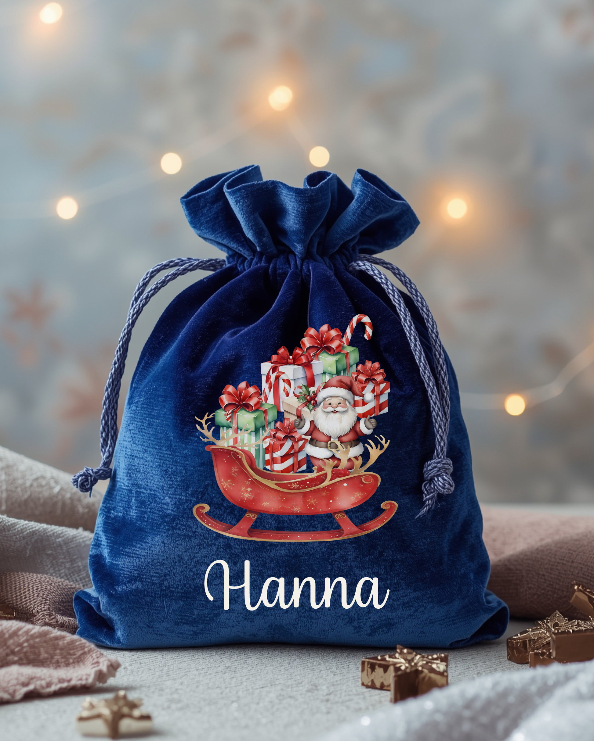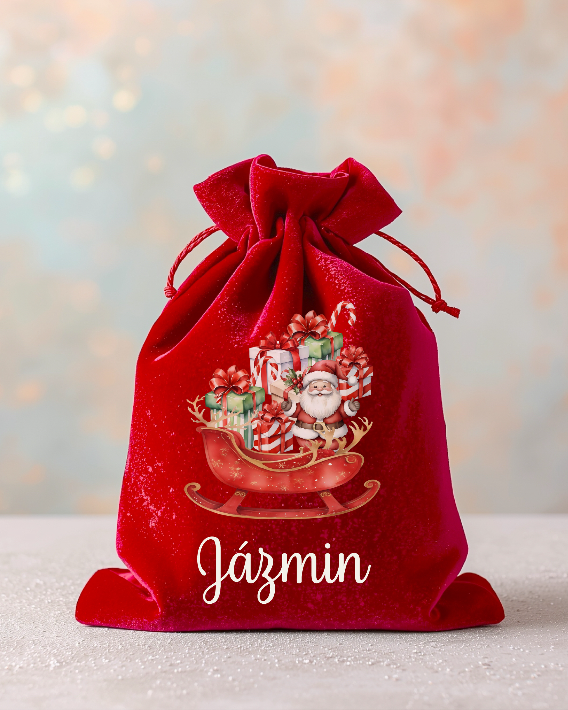 Nosztalgia mintával készített plüss mikulás zsák a Gyermek nevével. Anyaga puha plüss. A puha zsákba a Mikulás bele rejtheti a sok finomságot. A kedves minta és a Gyermek neve teszi igazán egyedivé.