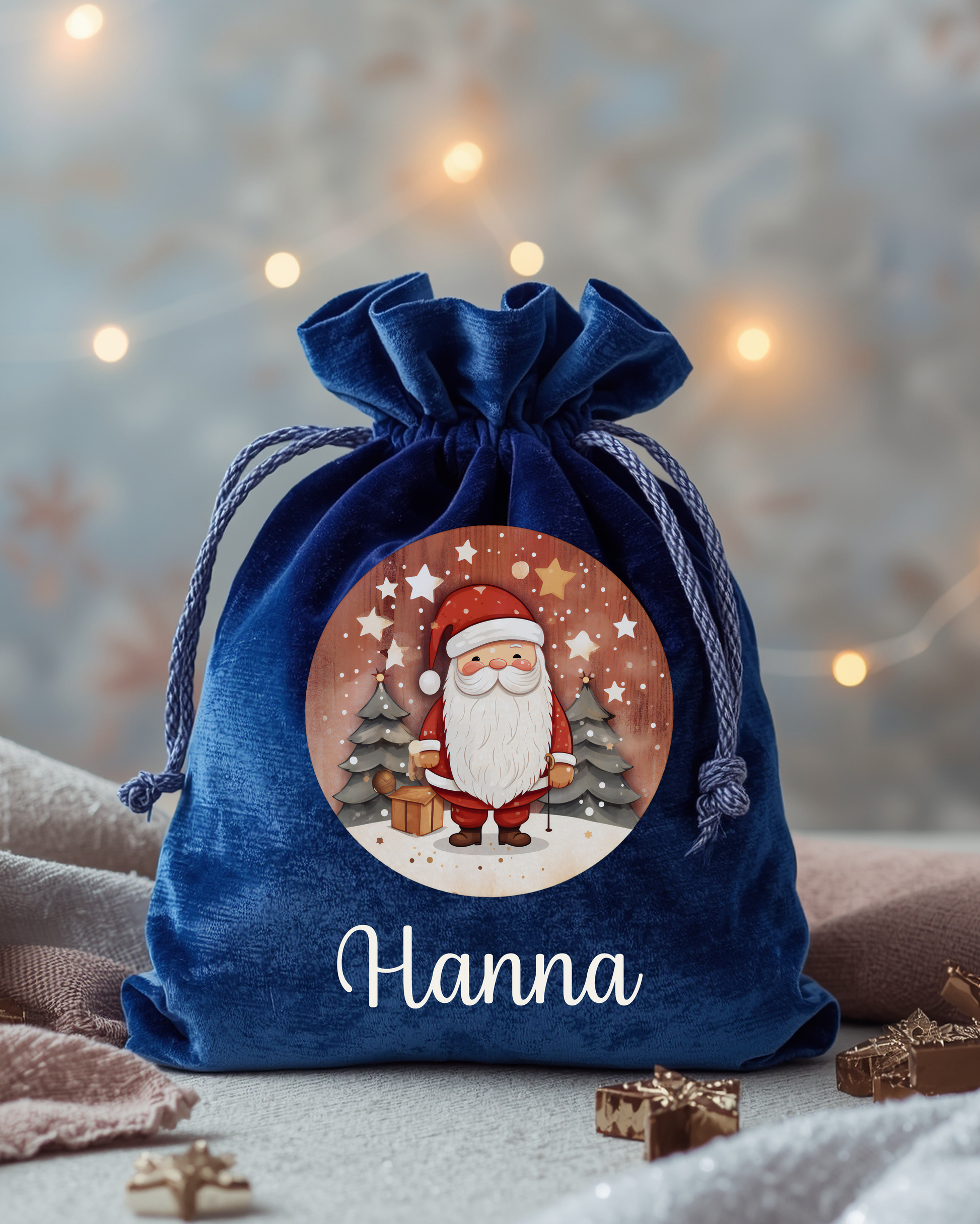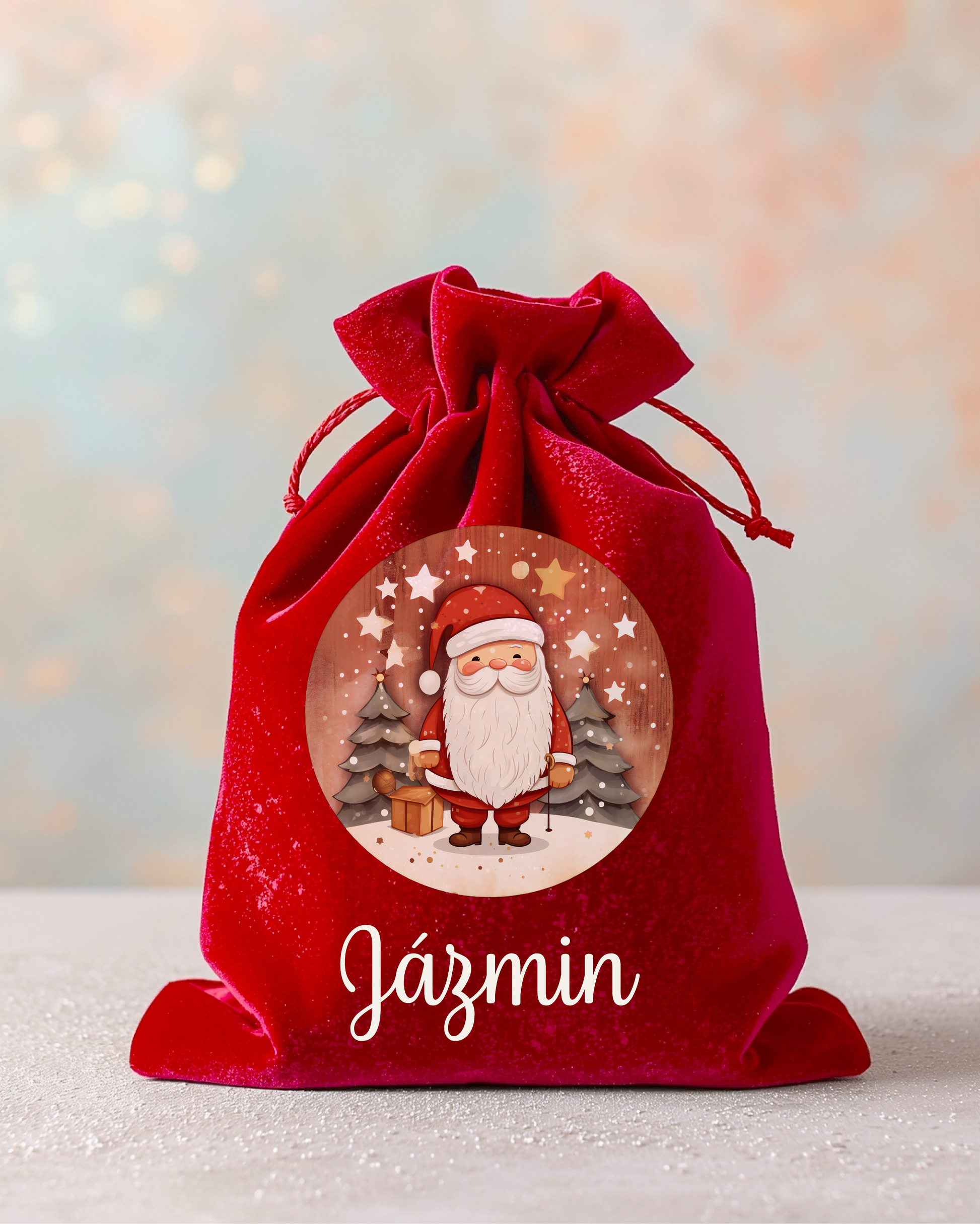 Nosztalgia mintával készített plüss mikulás zsák a Gyermek nevével. Anyaga puha plüss. A puha zsákba a Mikulás bele rejtheti a sok finomságot. A kedves minta és a Gyermek neve teszi igazán egyedivé.