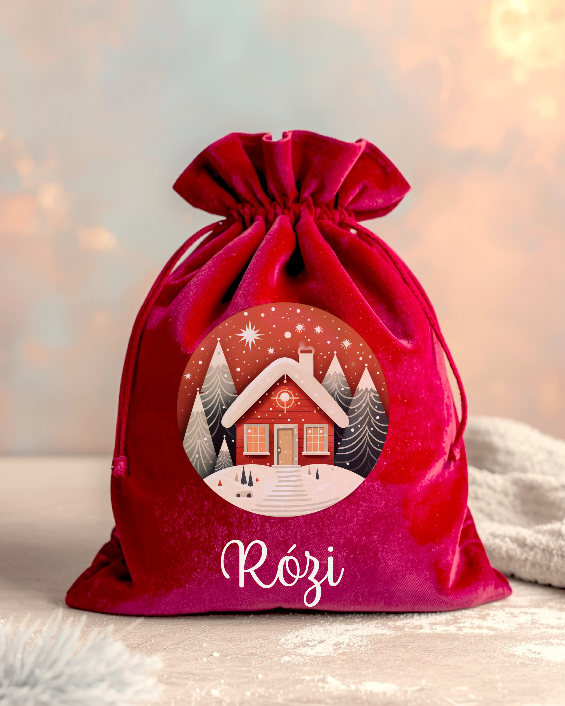 Nosztalgia mintával készített plüss mikulás zsák a Gyermek nevével. Anyaga puha plüss. A puha zsákba a Mikulás bele rejtheti a sok finomságot. A kedves minta és a Gyermek neve teszi igazán egyedivé.