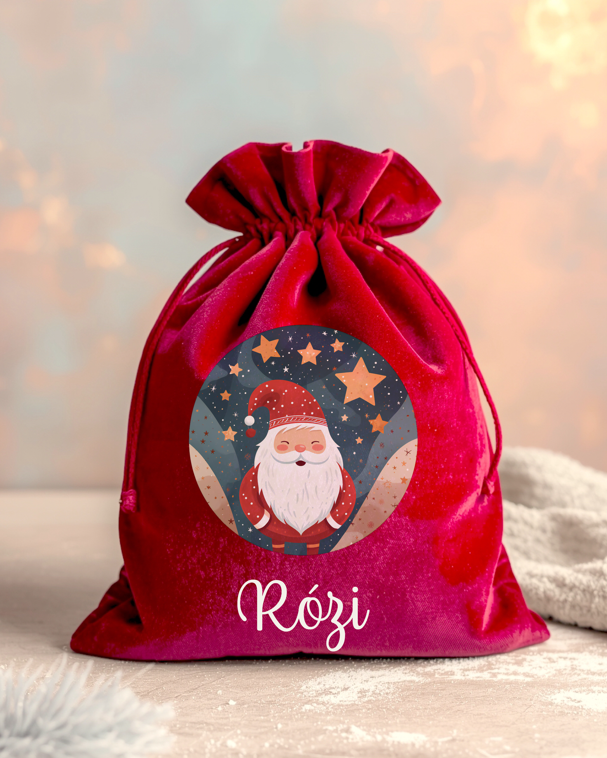 Nosztalgia mintával készített plüss mikulás zsák a Gyermek nevével. Anyaga puha plüss. A puha zsákba a Mikulás bele rejtheti a sok finomságot. A kedves minta és a Gyermek neve teszi igazán egyedivé.