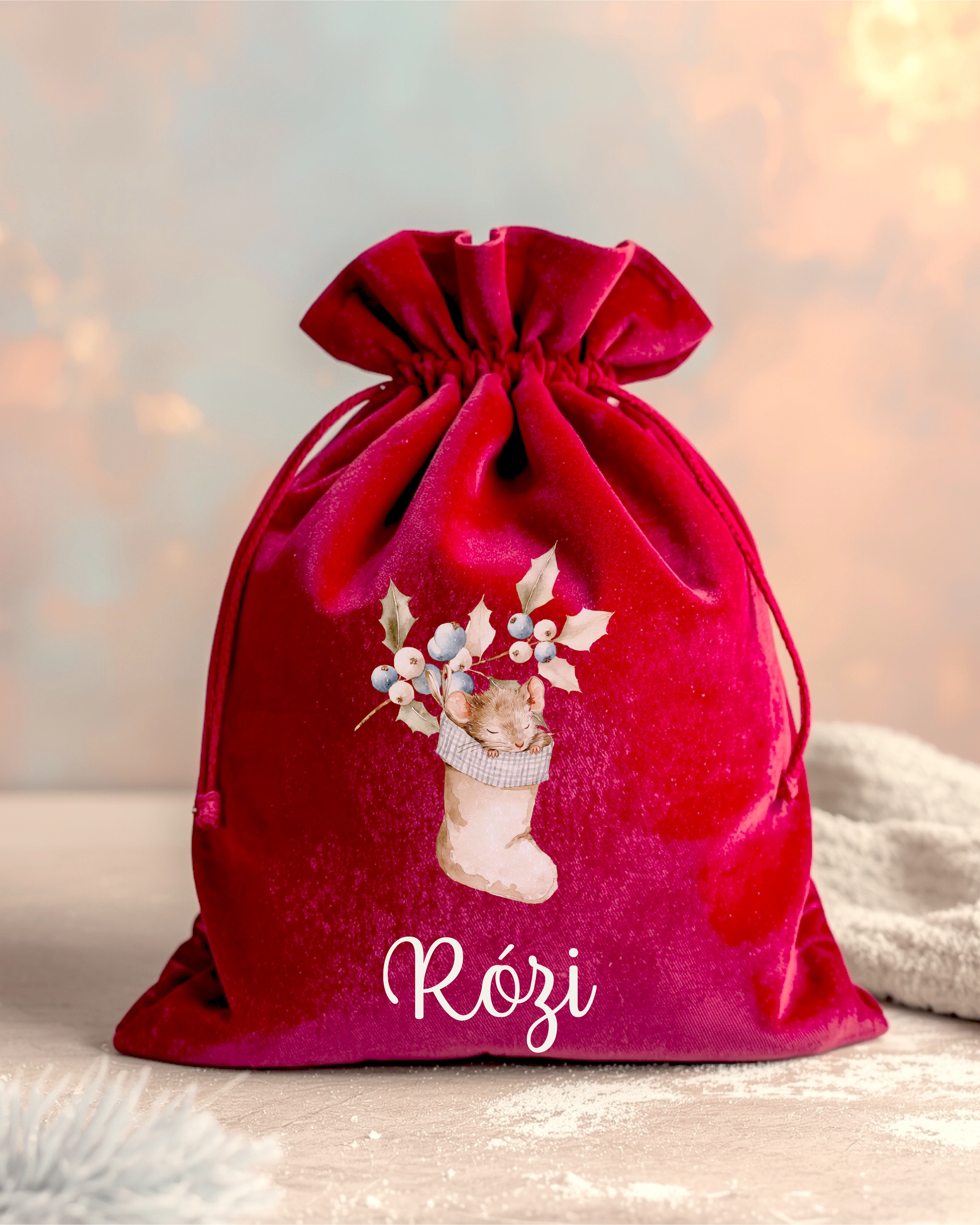 Nosztalgia mintával készített plüss mikulás zsák a Gyermek nevével. Anyaga puha plüss. A puha zsákba a Mikulás bele rejtheti a sok finomságot. A kedves minta és a Gyermek neve teszi igazán egyedivé.