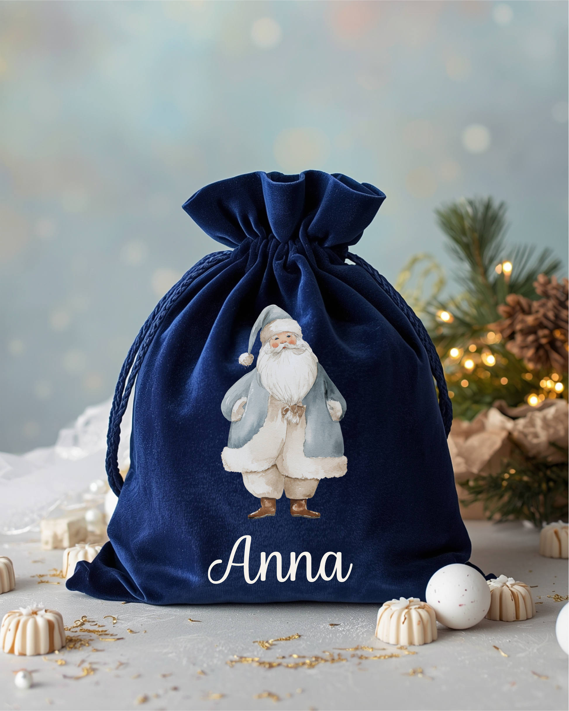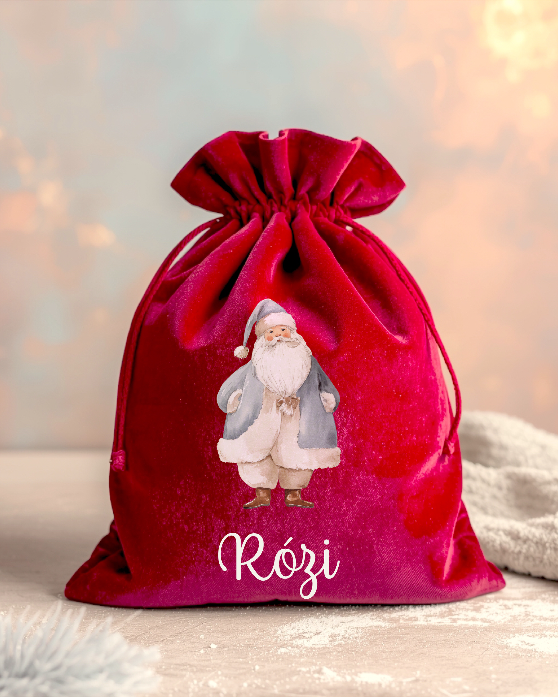 Nosztalgia mintával készített plüss mikulás zsák a Gyermek nevével. Anyaga puha plüss. A puha zsákba a Mikulás bele rejtheti a sok finomságot. A kedves minta és a Gyermek neve teszi igazán egyedivé.