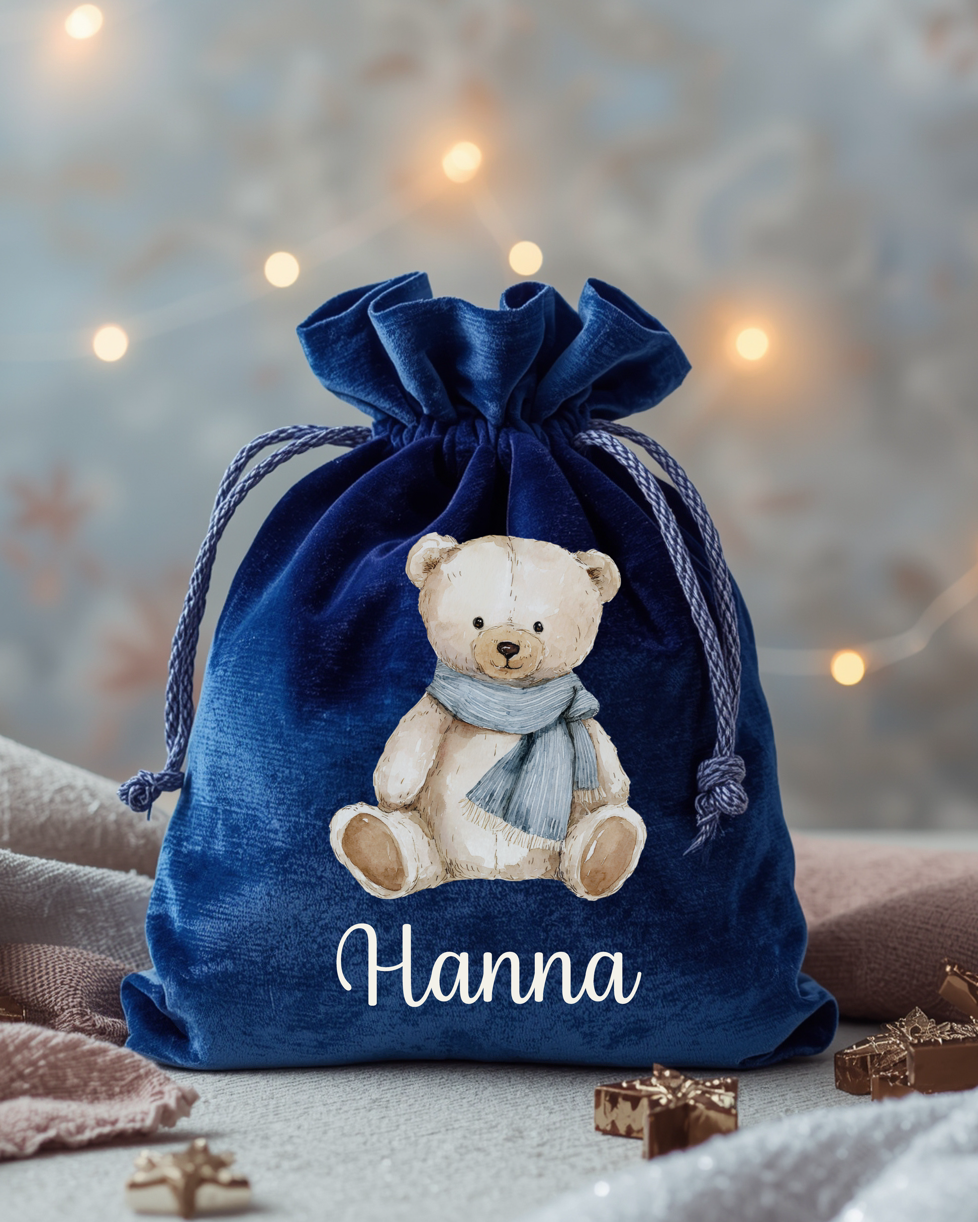 Nosztalgia mintával készített plüss mikulás zsák a Gyermek nevével. Anyaga puha plüss. A puha zsákba a Mikulás bele rejtheti a sok finomságot. A kedves minta és a Gyermek neve teszi igazán egyedivé.