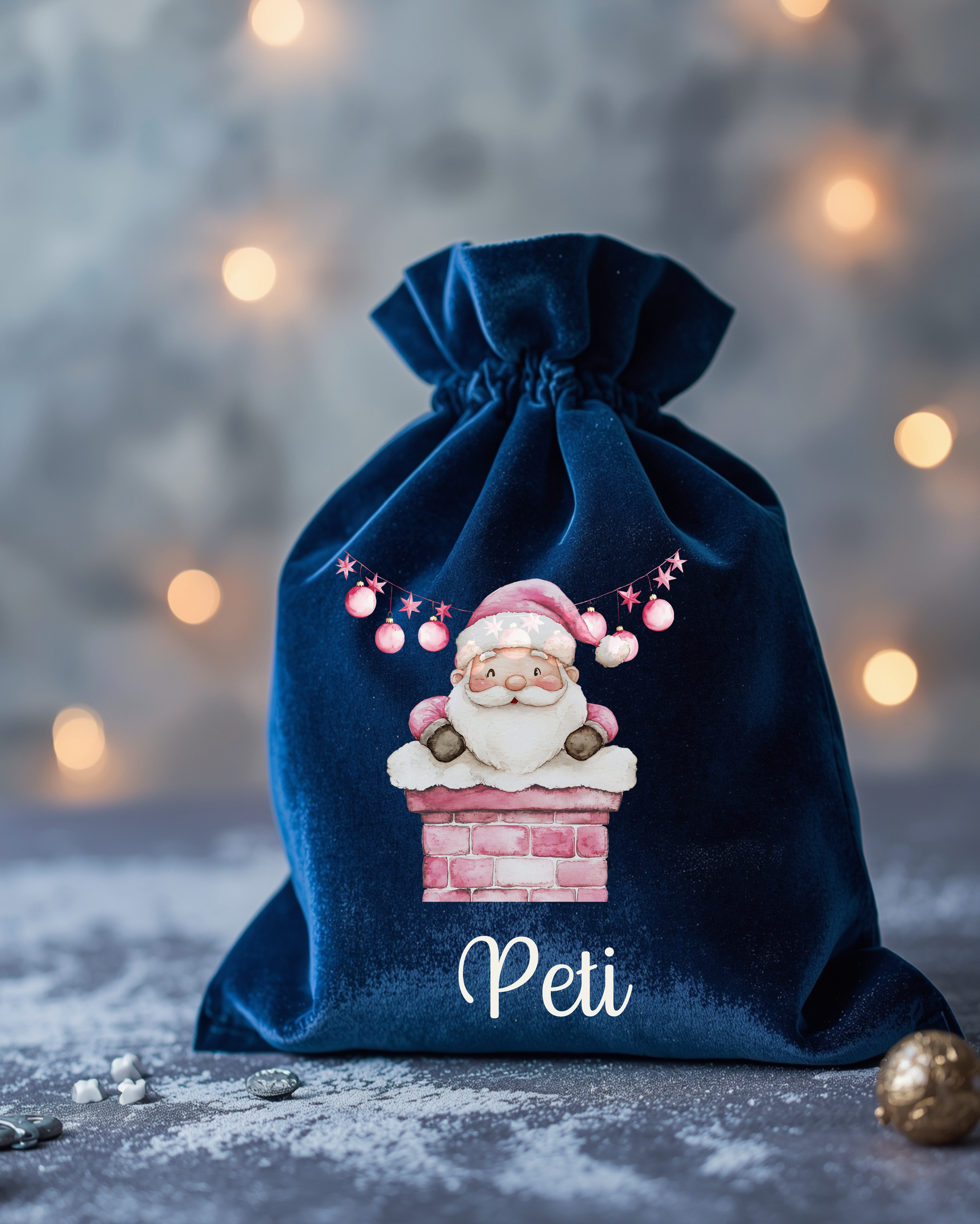 Nosztalgia mintával készített plüss mikulás zsák a Gyermek nevével. Anyaga puha plüss. A puha zsákba a Mikulás bele rejtheti a sok finomságot. A kedves minta és a Gyermek neve teszi igazán egyedivé.