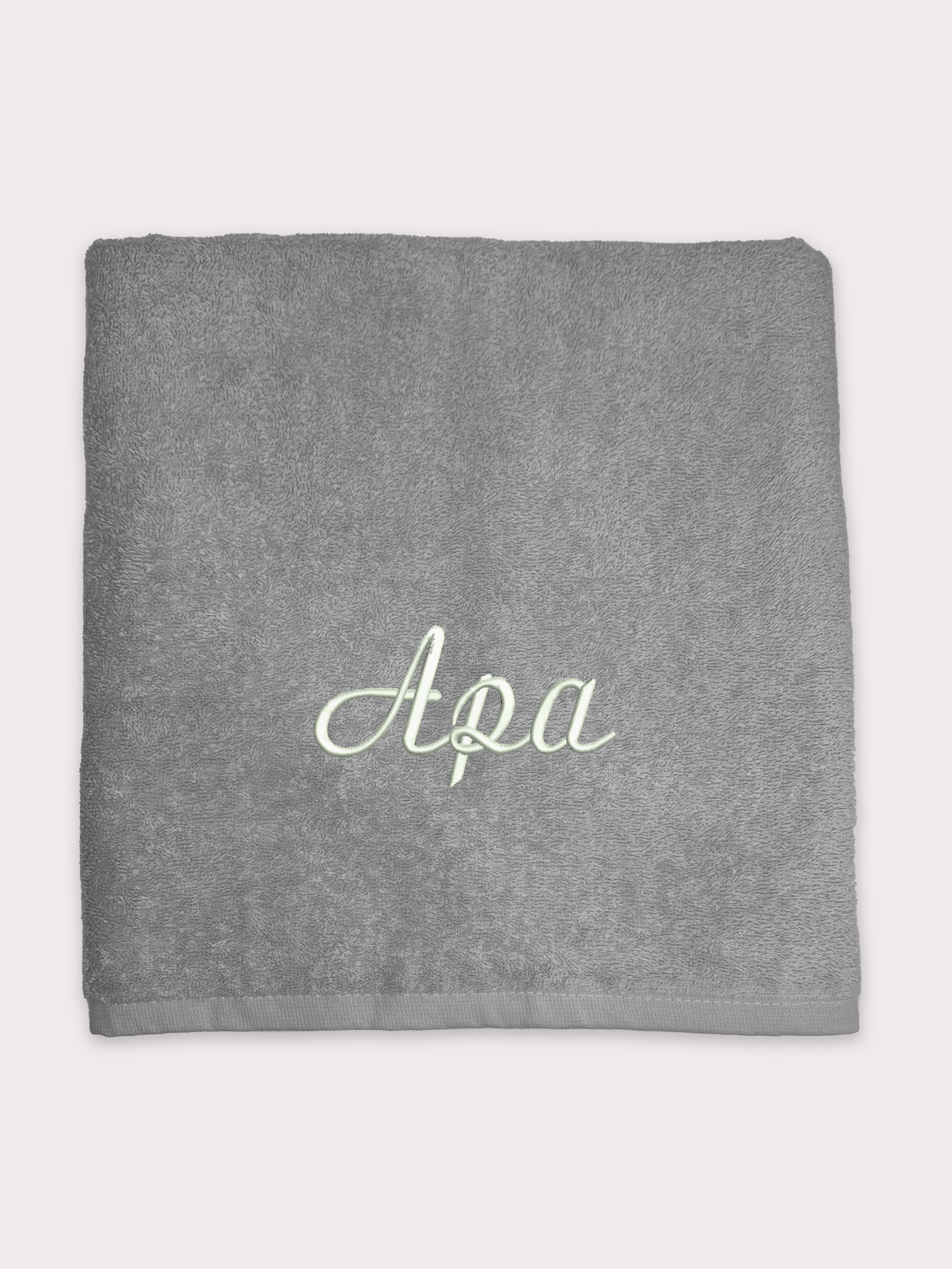 Hímzett törölköző választható egy névvel vagy szóval. Itt a törölköző színét és a hímzés színét tudod kiválasztani. A hímzendő szót írd meg nekünk megjegyzésként a kosárban.